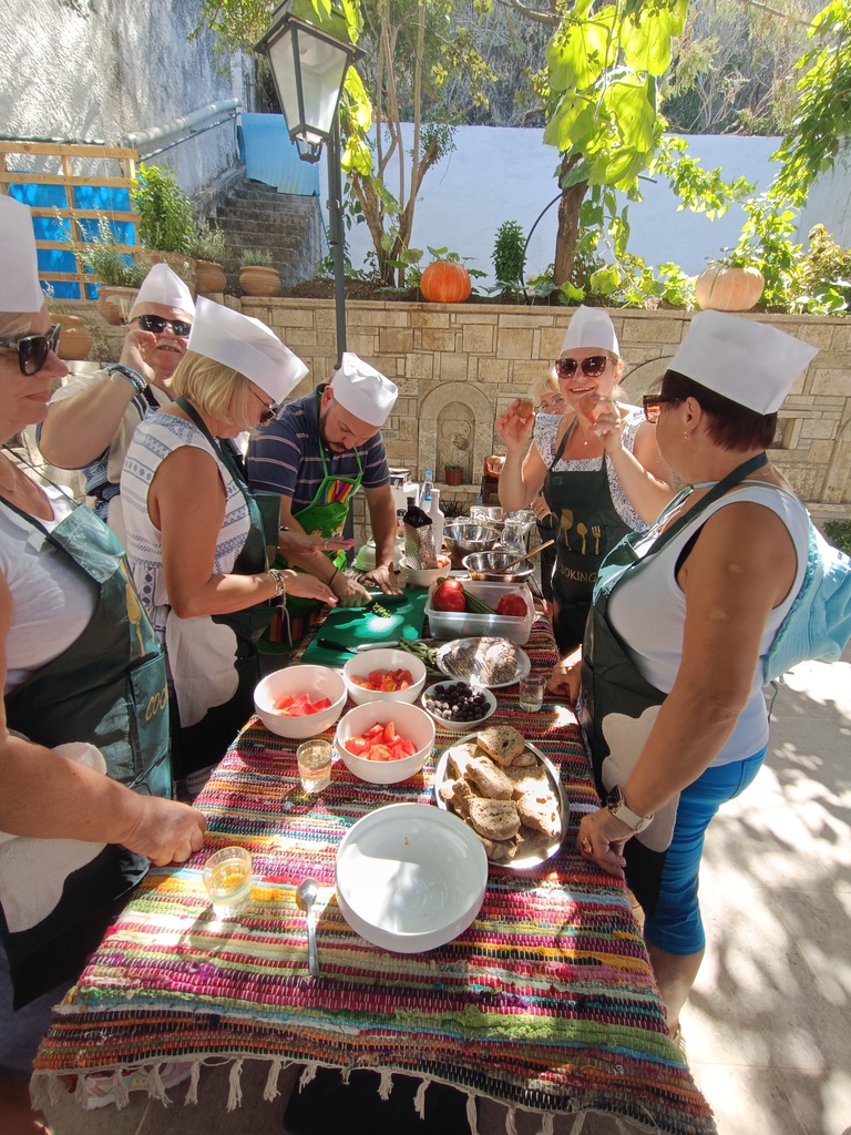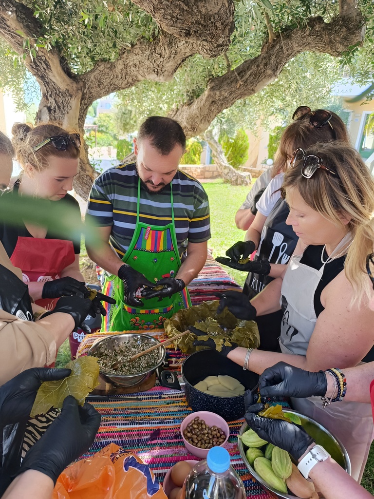 Warsztaty kulinarne na Krecie to świetna okazja do poznania ciekawych zakątków wyspy, od kuchni. Na naszych lekcjach gotowania, doświadczony szef kuchni i nasz przyjaciel, Kostas Perikos będzie zarażał uczestników swoją miłością do Krety, jej kultury, tradycji i kuchni oraz przekaże nam wiedzę i doświadczenie, zdobywane przez lata w swoim zawodzie. Realizując ten wspólny, kulinarny projekt pragniemy, aby wszyscy chętni i otwarci na nowe pomysły, poznawali naszą ukochaną Kretę od kuchni. Bo nic tak przecież nie zbliża i łączy ludzi, jak wspólne gotowanie i jedzenie. Zabierzemy Was w miejsce nietuzinkowe, wyjątkowe, niezwykle malownicze, gdzie można poobcować z lokalną społecznością, poznać Kretę prawdziwą, z daleka od komercyjnych i zatłoczonych kurortów wypoczynkowych. Odwiedzimy kreteńską wieś, gdzie można poczuć ten oryginalny, niepowtarzalny klimat wyspy, gdzie pachnie świeżymi ziołami, które sami nazbieramy by potem wykorzystać przy wspólnym gotowaniu. Nasze gotowanie odbywa się w miłej, rodzinnej atmosferze. Będziemy używać najlepszych, kreteńskich produktów najwyższej jakości, kreteńskiej oliwy z oliwek, świeżych warzyw od tutejszych rolników. Pod okiem super Szefa, stworzymy pyszne, kilkudaniowe, sezonowe menu by potem przy lokalnym winie pobiesiadować, posłuchać muzyki i kreteńskich opowieści. Bo, jak mawiał klasyk: dobrze jest jadać z Grekami, oni to potrafią.